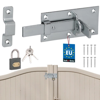 Závora ohnutá univerzální na dveře branku ocelová s visacím zámkem 100 mm