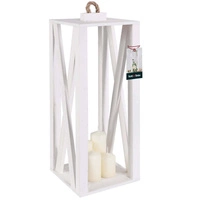 Dřevěná lucerna na svíčku domácí zahrada bílá 13,5x13,5 cm