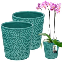 Keramický květináč tyrkysová rostliny orchideje 9,5 cm sada 2 ks.