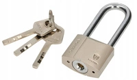 Zesílený visací zámek s dlouhým ocelovým třmenem 40 mm satin
