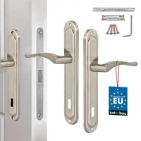 Klasická dveřní klika dlouhá štítka pro cylindrickou vložku saténová 90 mm
