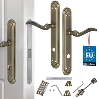 Klasická dveřní klika dlouhá štítka pro cylindrickou vložku patina 72 mm
