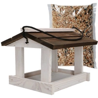 Krmítko pro ptáky dřevěné bílé hnědé + krmivo 0,5 kg