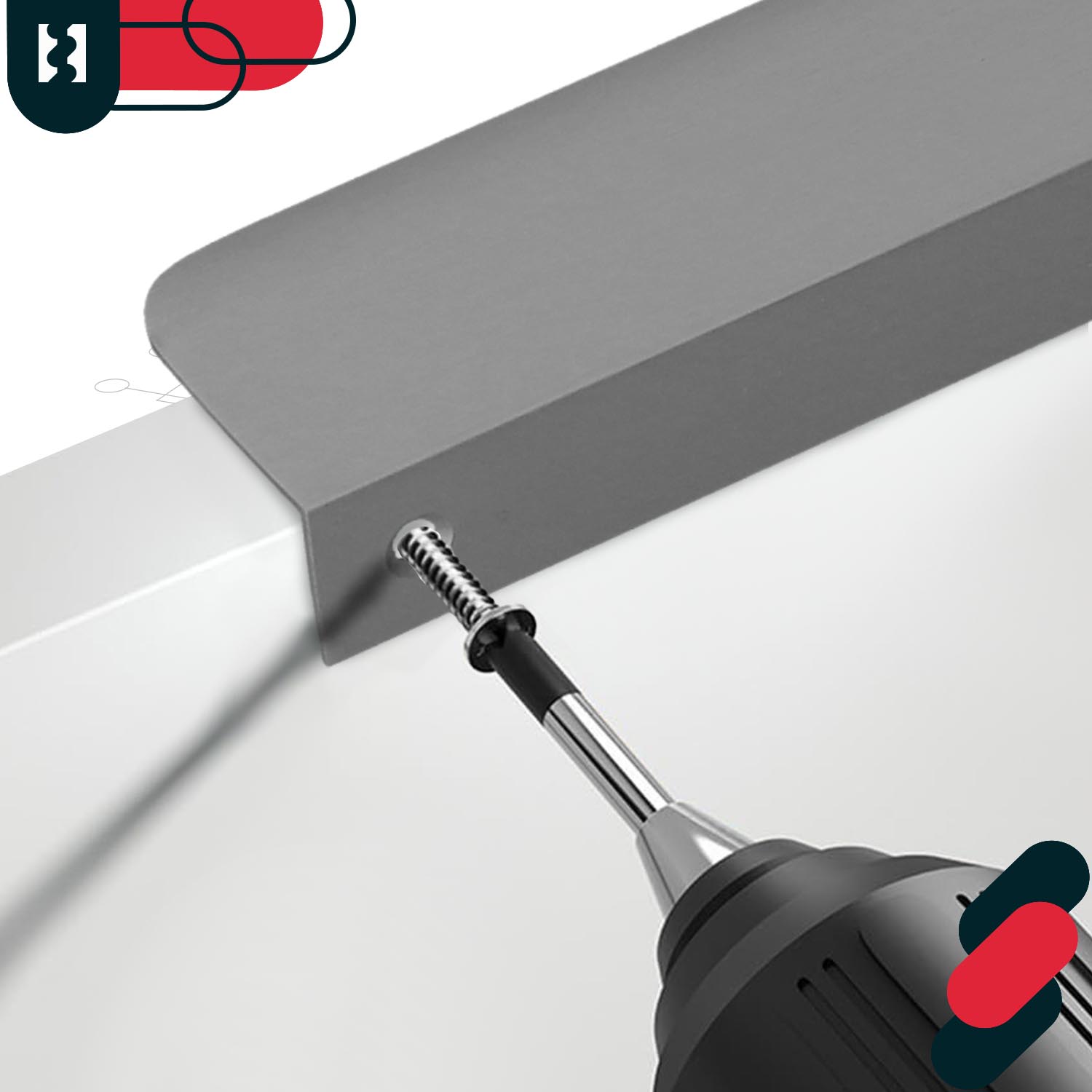 - Montáž úchytky je rychlá a jednoduchá – v sadě se nacházejí dva šrouby, které umožňují její stabilní a pevné připevnění k nábytkové ploše.