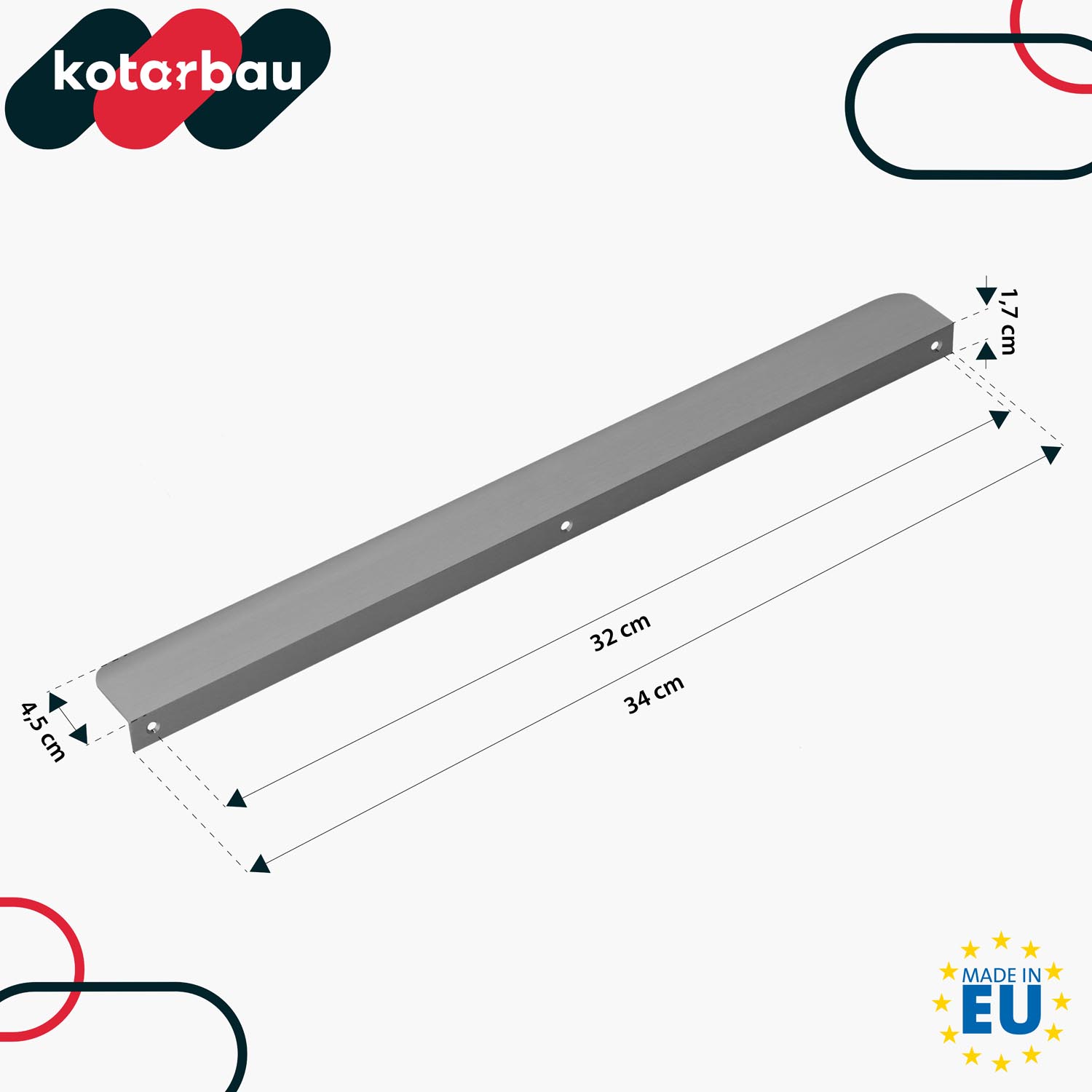 - Montáž úchytky je rychlá a jednoduchá – v sadě se nacházejí dva šrouby, které umožňují její stabilní a pevné připevnění k nábytkové ploše.
