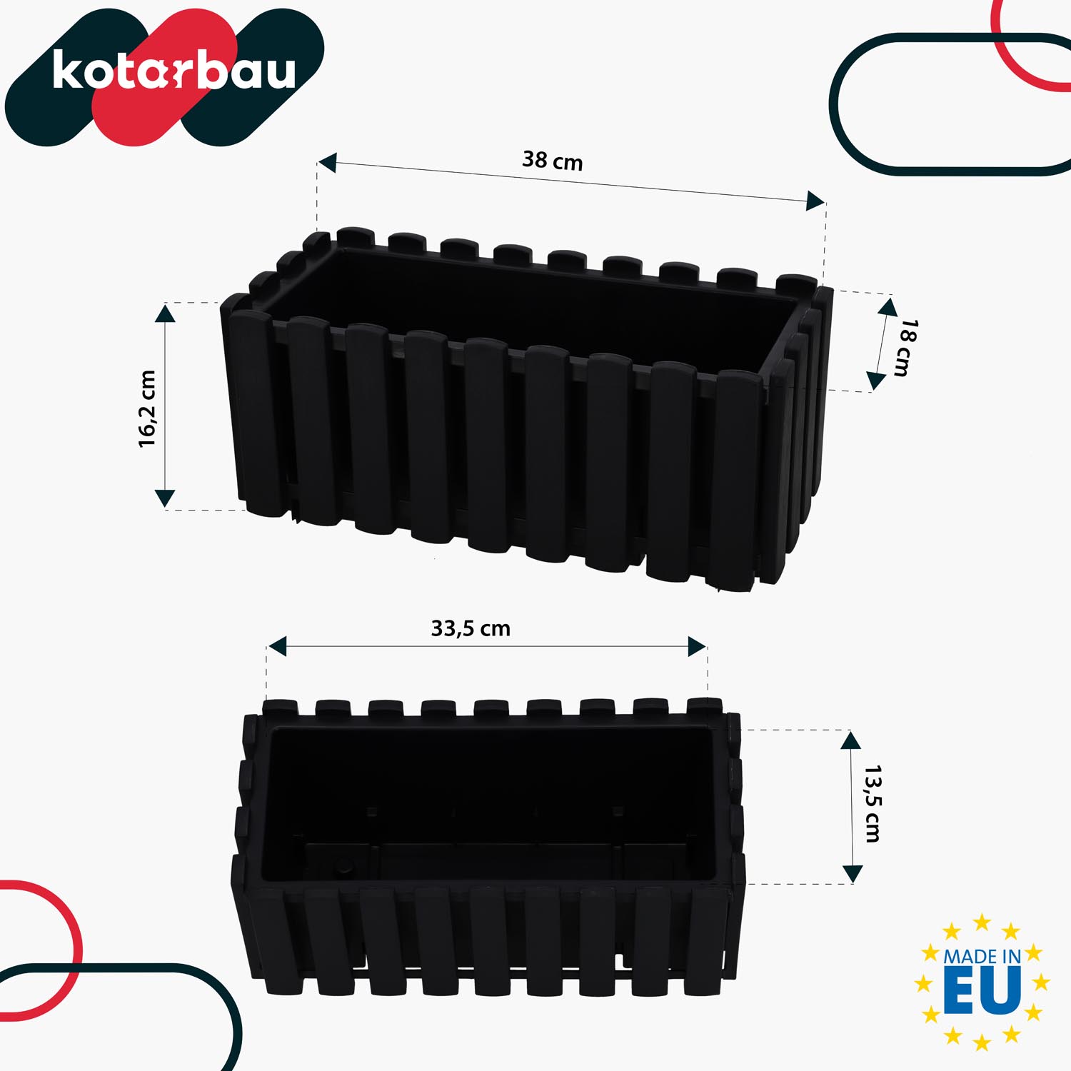 - Květináče jsou vyrobeny z odolného plastu, který účinně odolává vlhkosti, UV záření a teplotám – jak vysokým, tak nízkým.