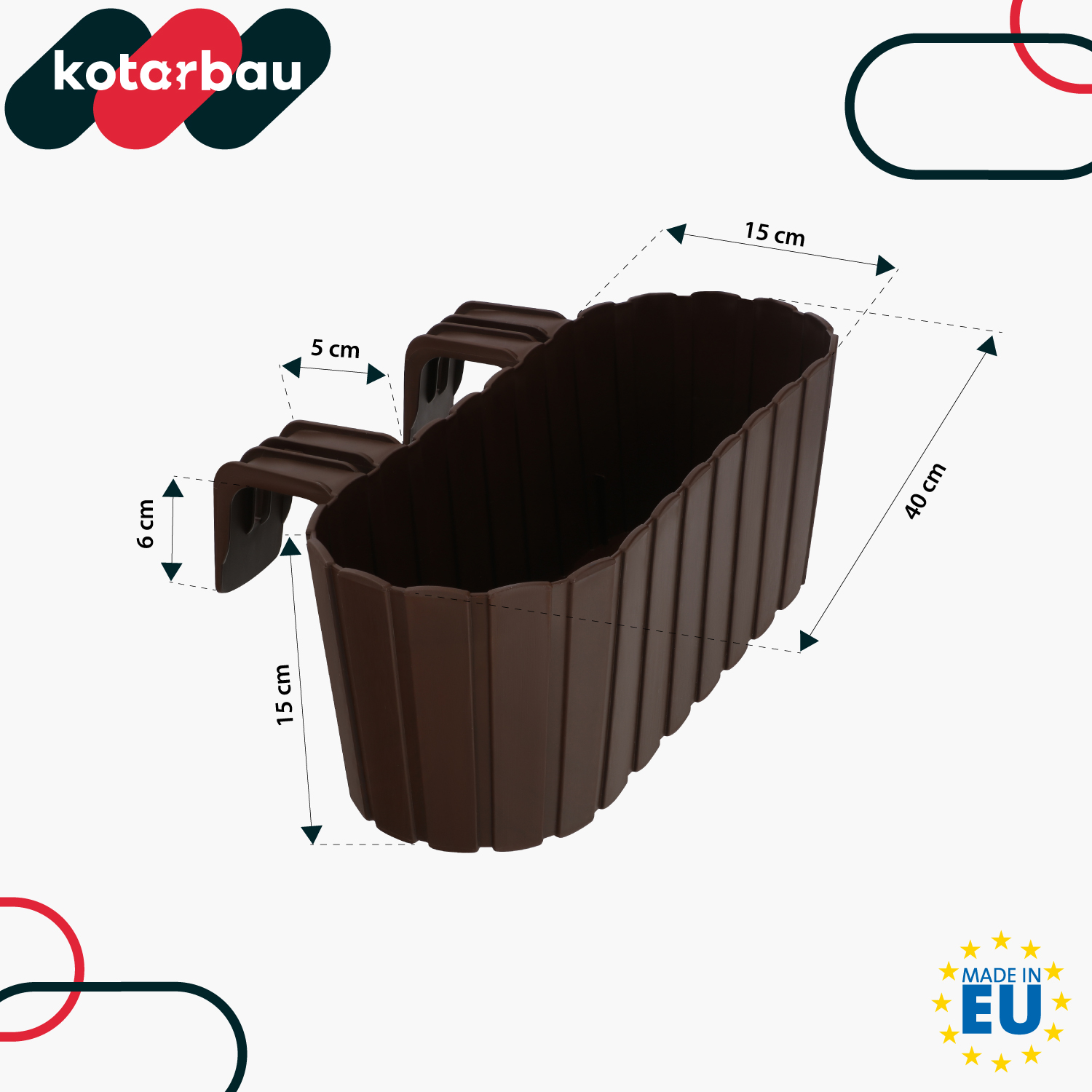Květináč balkónový oválný hnědý na zábradlí 400 MM Sada 4 ks..