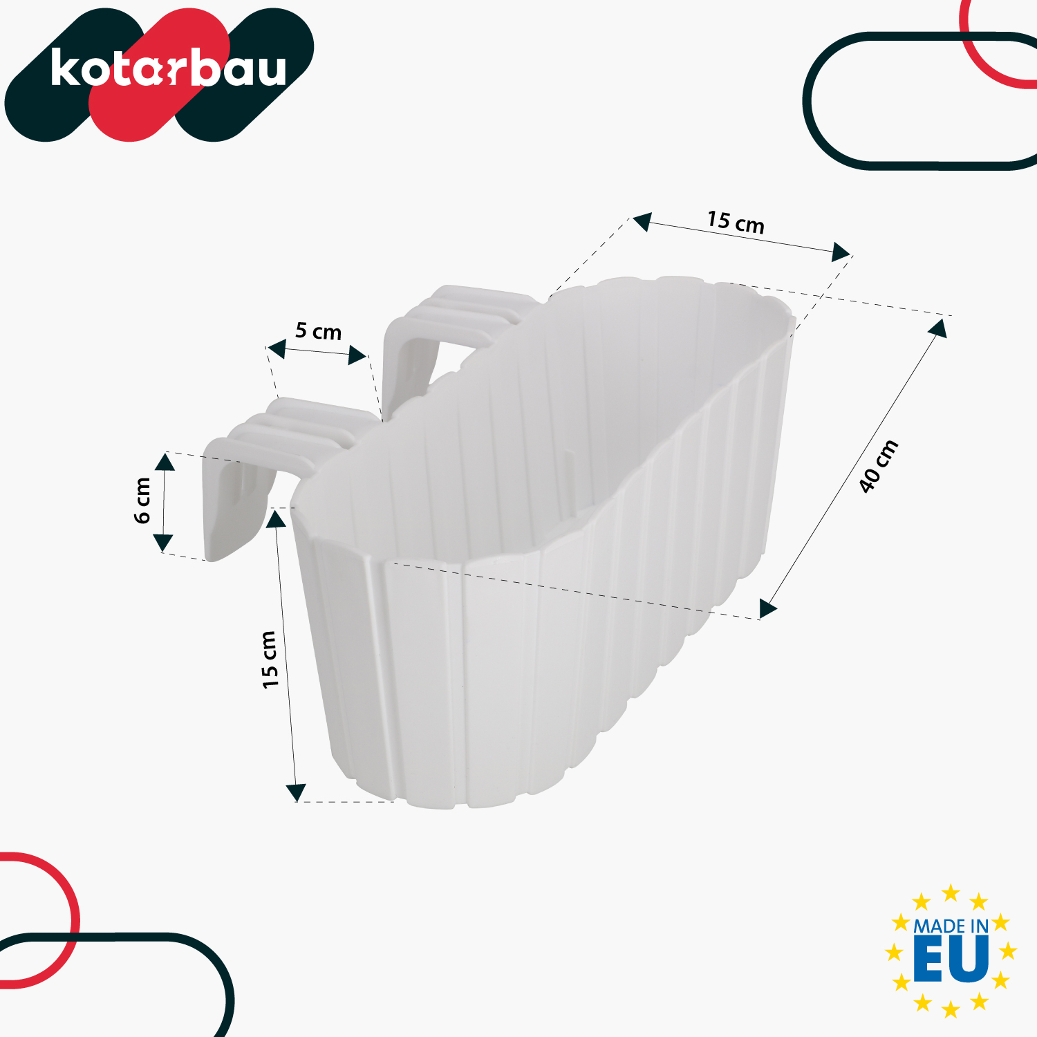 Květináč balkónový oválný bílý na zábradlí 400 MM Sada 4 ks..