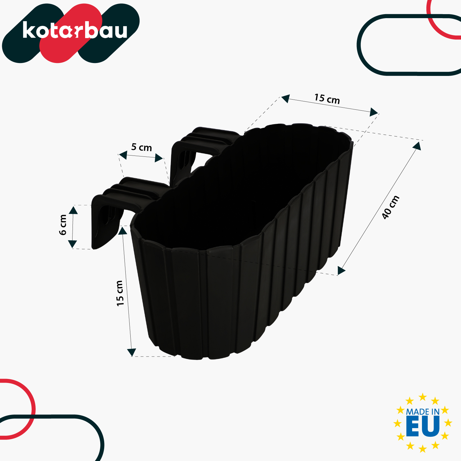 Květináč balkónový oválný antracit na zábradlí 400 MM Sada 2 ks..
