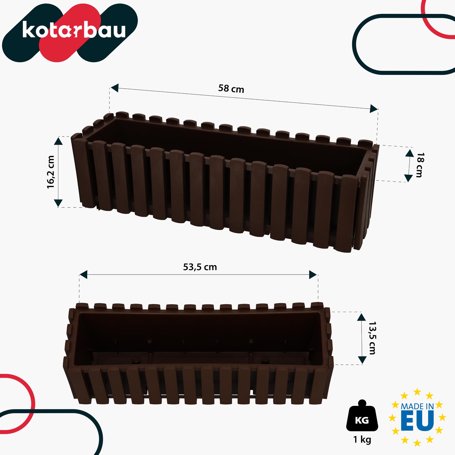 Květináč balkónový hnědý 600 MM Sada 4 ks..
