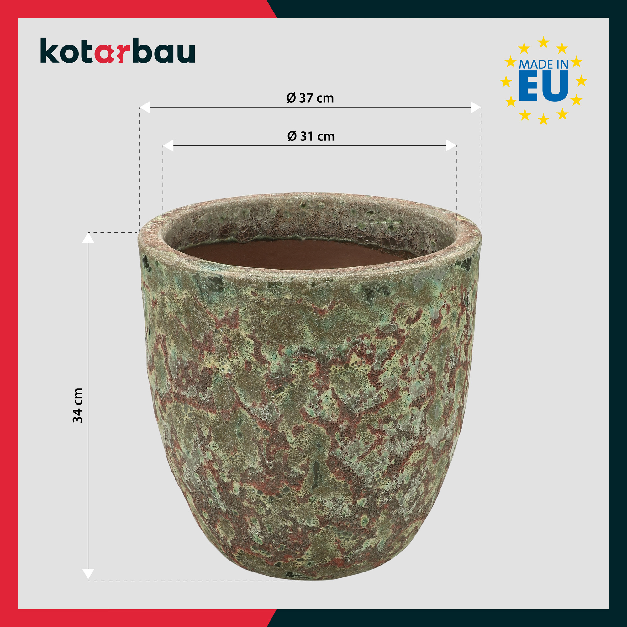 - Velká velikost a glazovaná keramika činí z květináče elegantní doplněk každého prostoru. Skvěle se hodí do zahrad, na terasy i do veřejných prostor, jako jsou parky, hotely nebo restaurace.