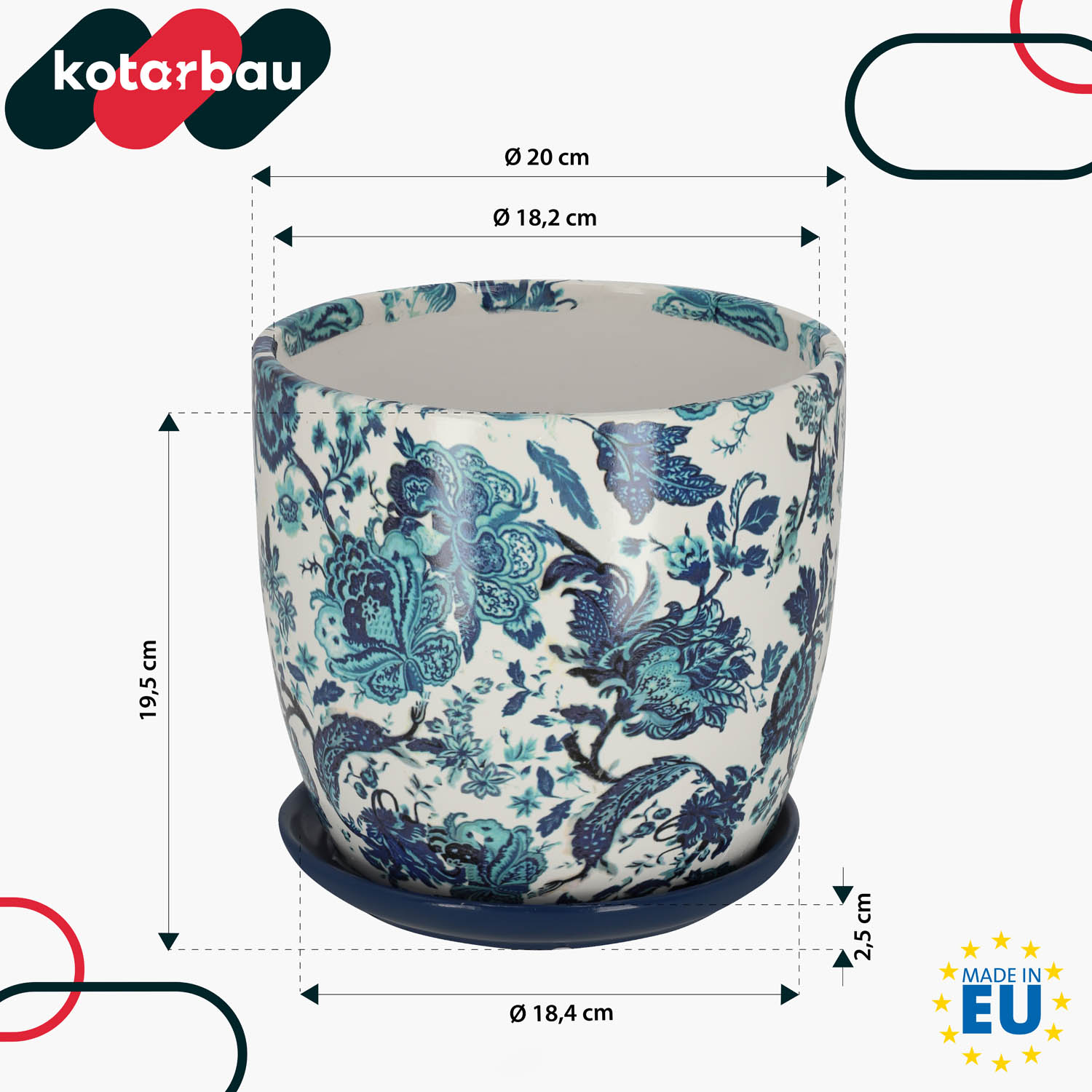 Květináč keramický s podmiskou modré květy bílý 20x19,5 cm