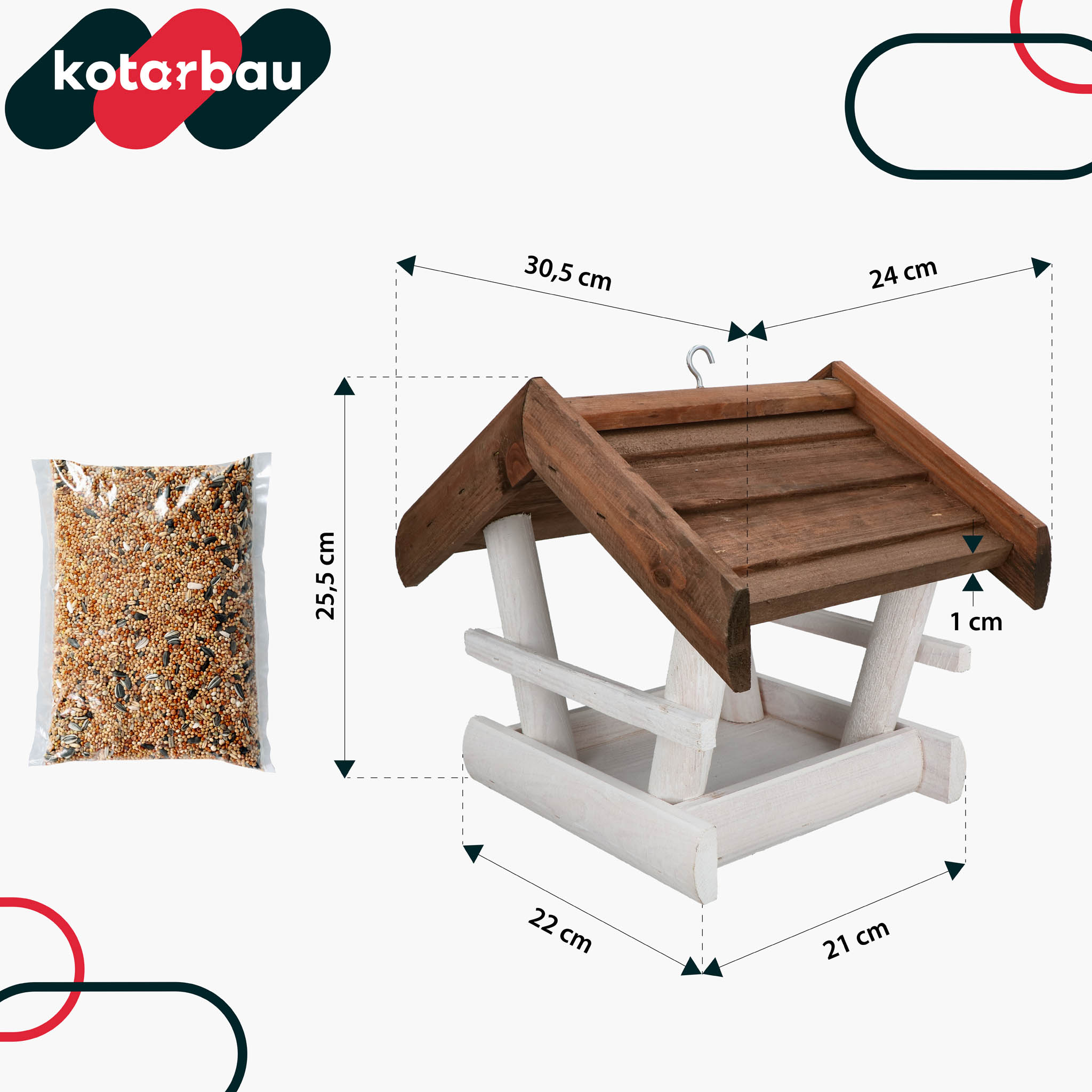 KRMÍTKO PRO PTÁKY DŘEVĚNÉ BÍLÉ HNĚDÉ + KRMIVO 0,5 KG