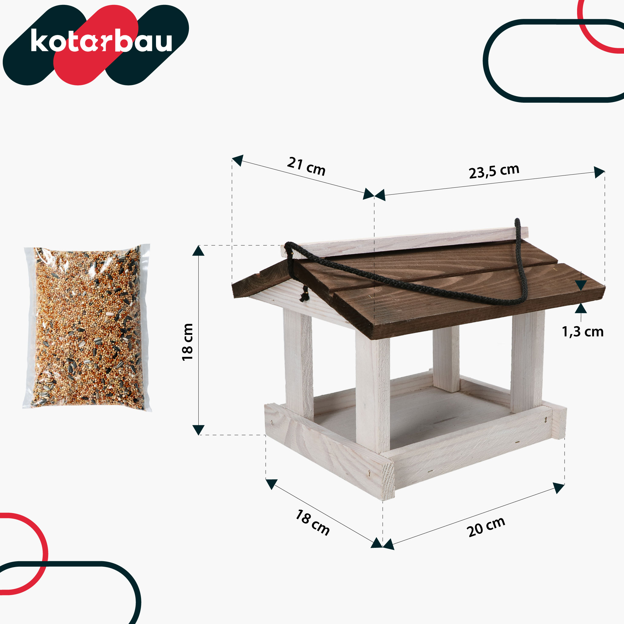 KRMÍTKO PRO PTÁKY DŘEVĚNÉ BÍLÉ HNĚDÉ + KRMIVO 0,5 KG