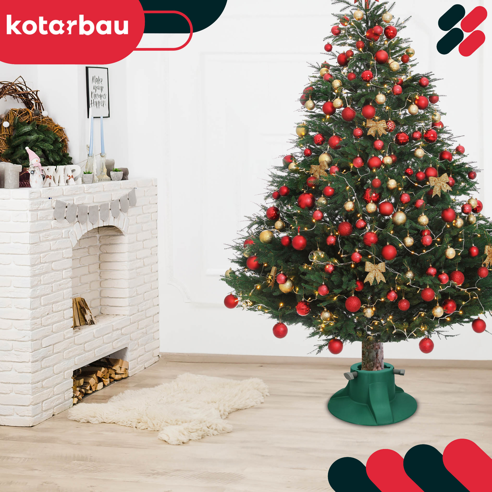 • Stojan je vyroben z pevného plastu s vysokou odolností proti prasklinám a deformacím. Díky tomu snadno unese i těžké, rozložité stromky a zachová stabilitu po celé vánoční období.