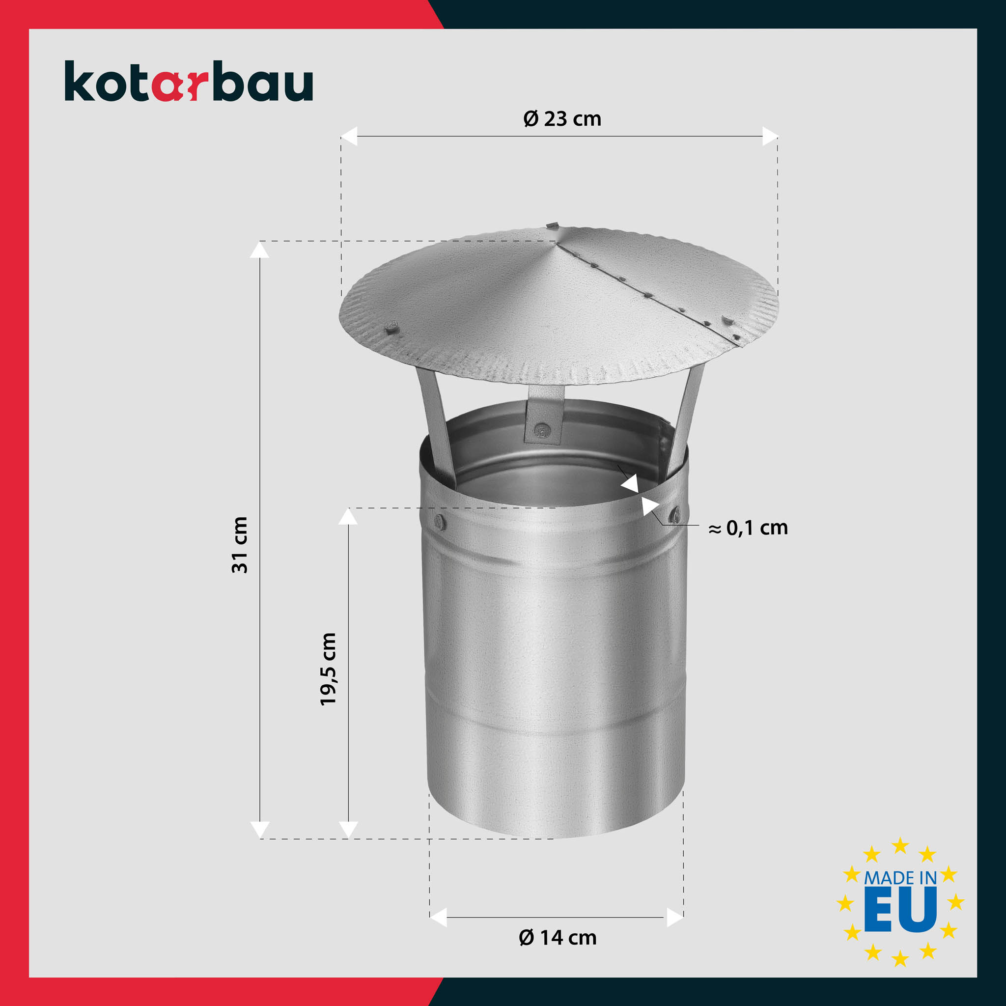 - Komínová stříška je vyrobena z vysoce kvalitní pozinkované oceli, odolné proti korozi a mechanickému poškození. Proces zinkování vytváří účinnou ochrannou vrstvu, která chrání kov před rzí i v prostředí se zvýšenou vlhkostí.