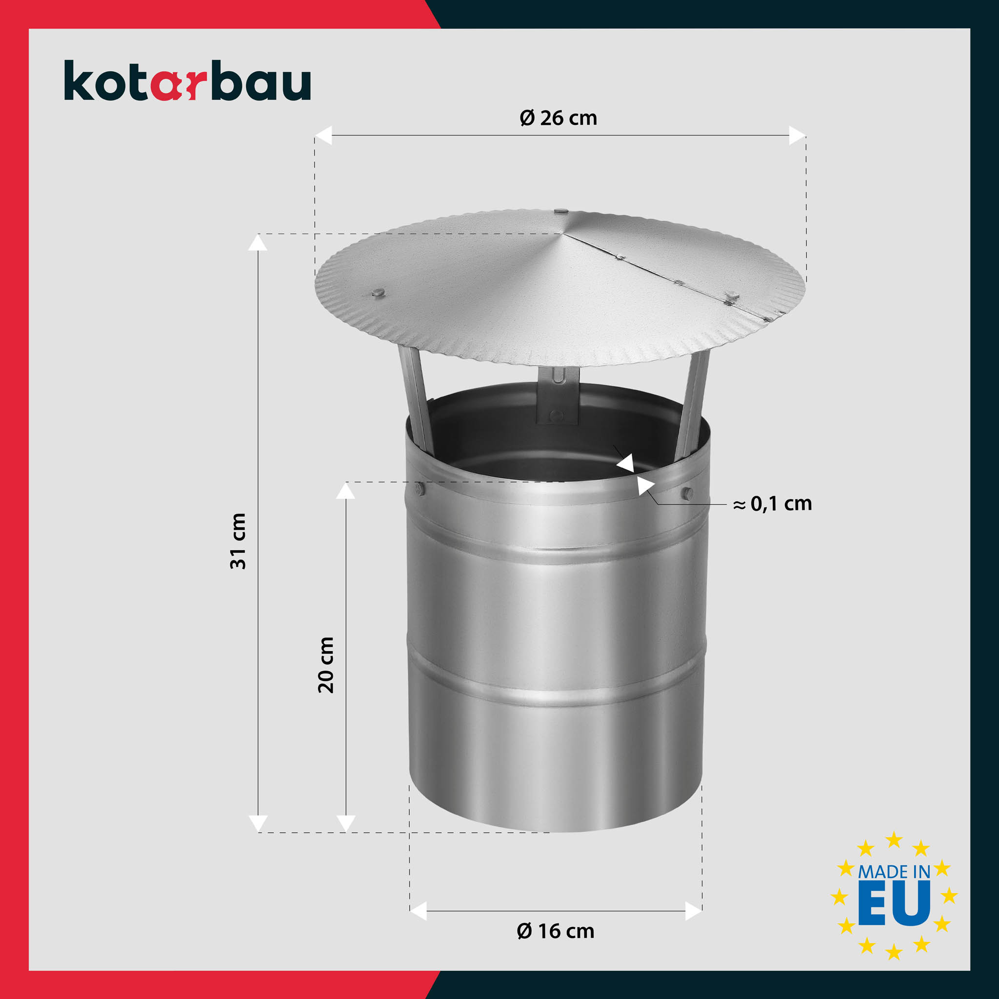 • Komínová stříška je vyrobena z vysoce kvalitní pozinkované oceli, odolné proti korozi a mechanickému poškození. Proces zinkování vytváří účinnou ochrannou vrstvu, která chrání kov před rzí i v prostředí se zvýšenou vlhkostí.
