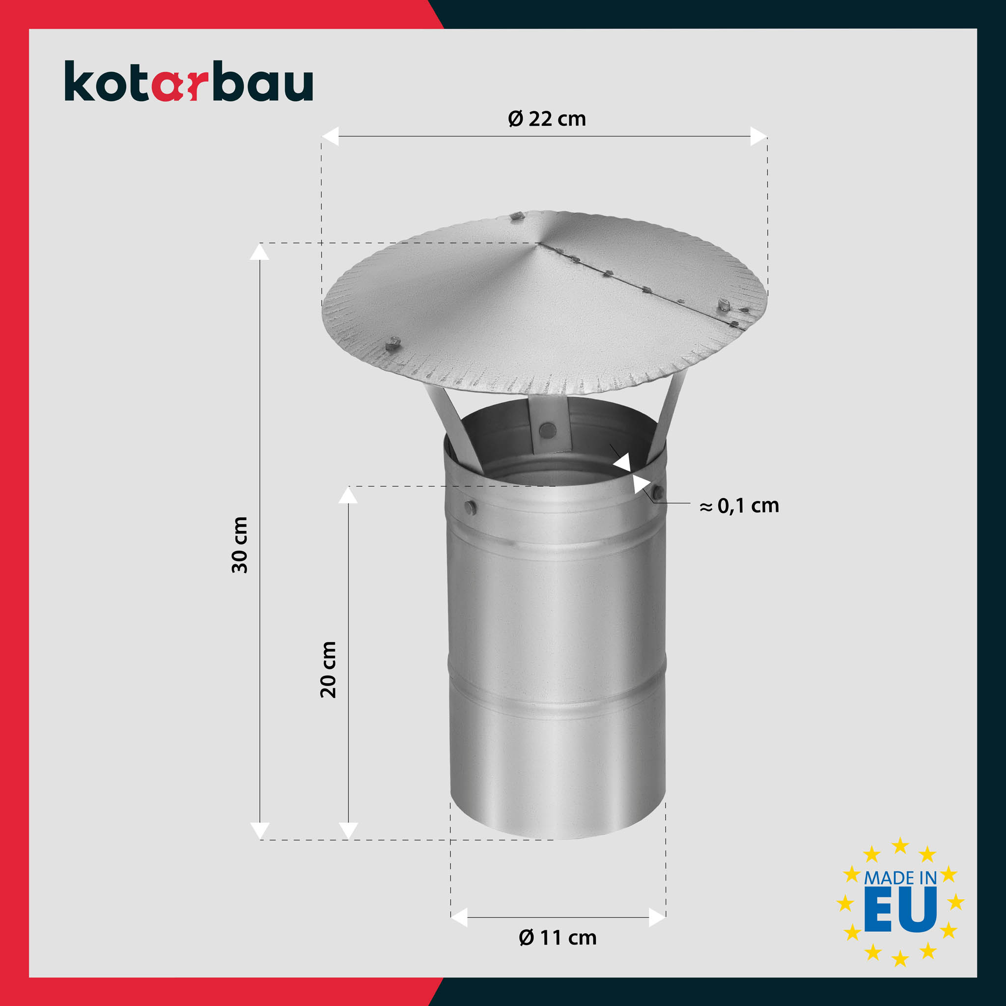 • Komínová stříška je vyrobena z vysoce kvalitní pozinkované oceli, odolné proti korozi a mechanickému poškození. Proces zinkování vytváří účinnou ochrannou vrstvu, která chrání kov před rzí i v prostředí se zvýšenou vlhkostí.
