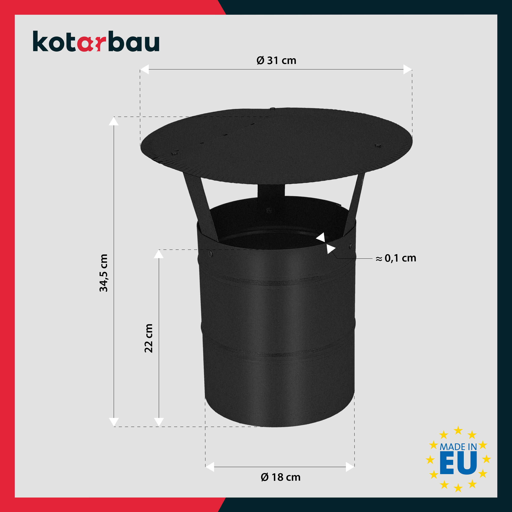 STŘÍŠKA KOUŘOVÁ NA KOMÍNOVÉ POTRUBÍ POZINKOVANÁ ČERNÁ 180 MM