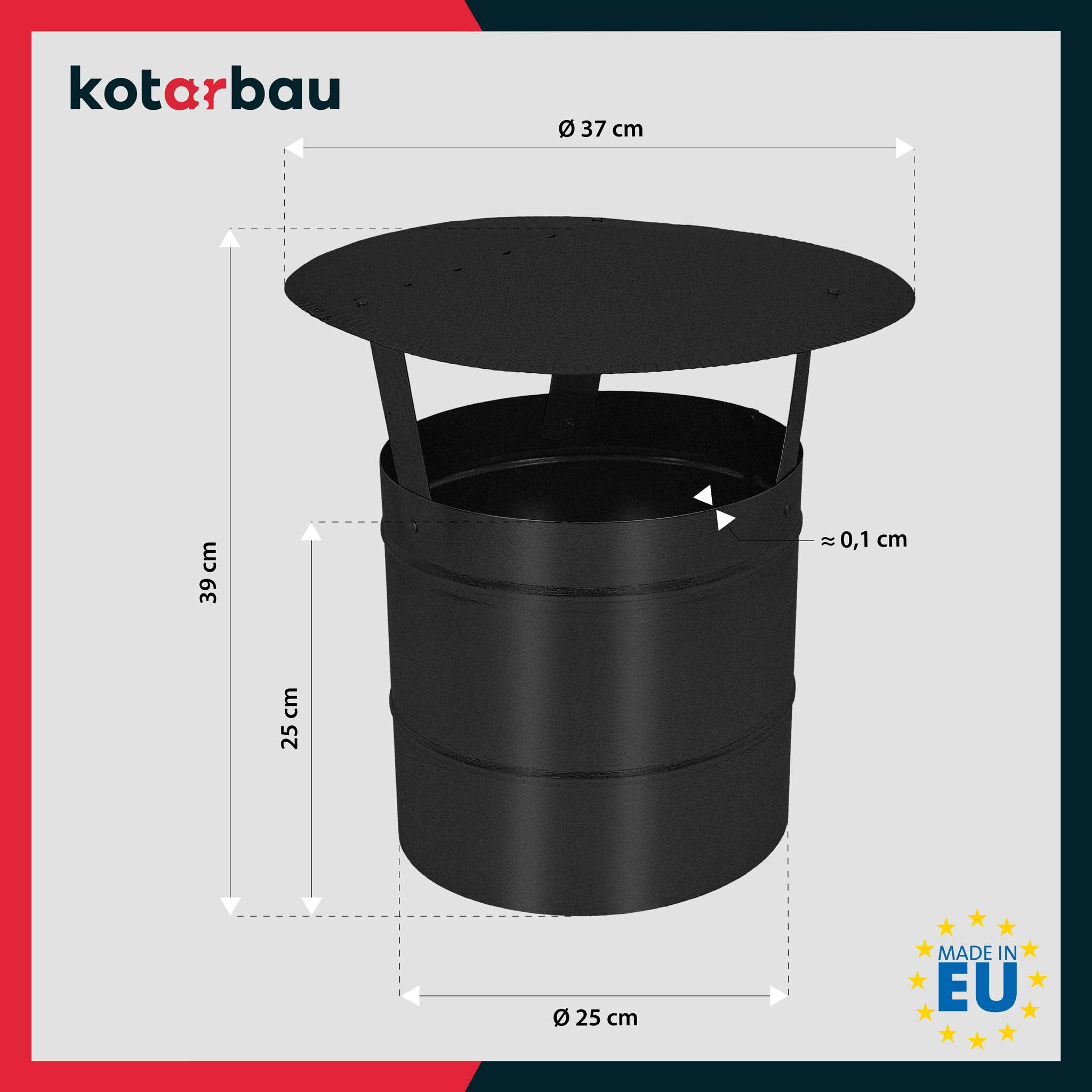 Stříška kouřová na komínové potrubí pozinkovaná černá 250 mm