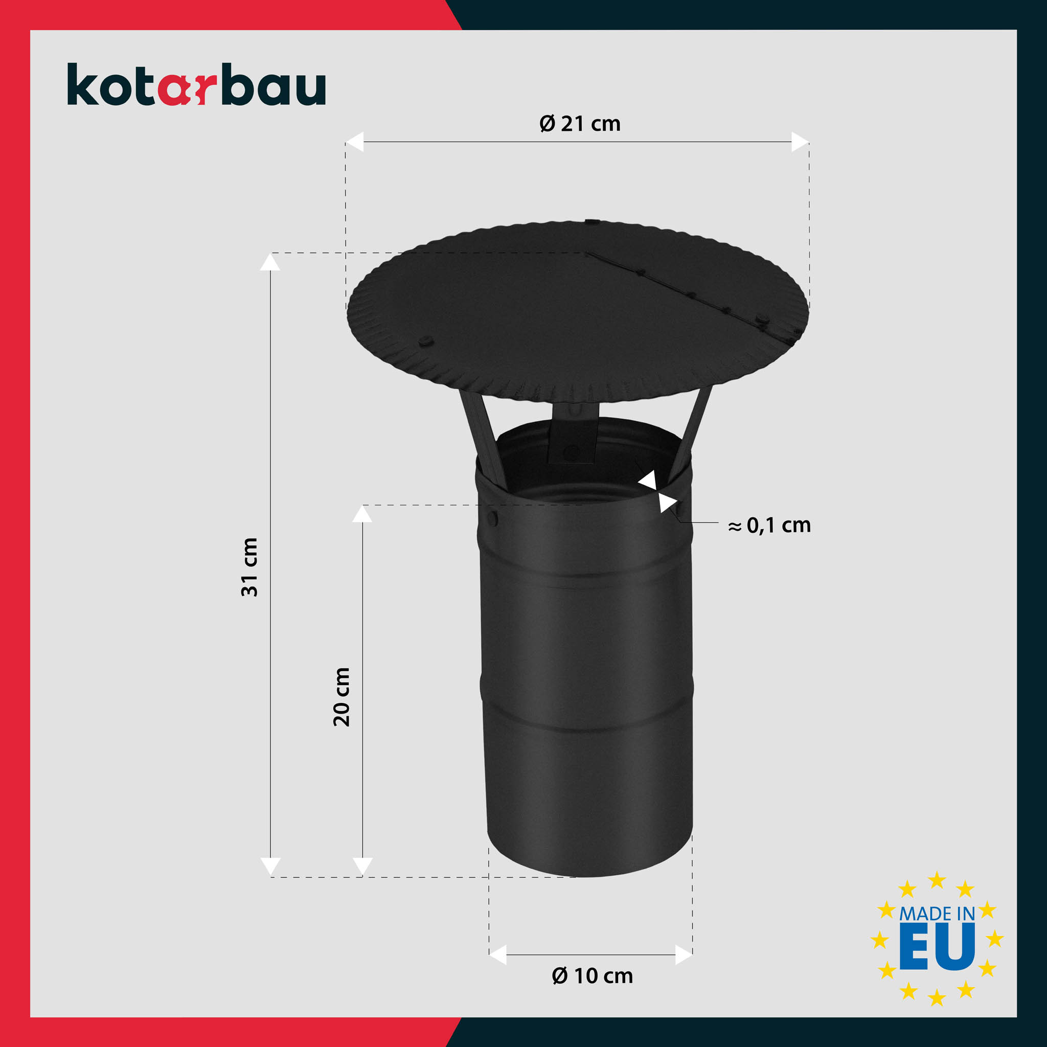 STŘÍŠKA KOUŘOVÁ NA KOMÍNOVÉ POTRUBÍ POZINKOVANÁ ČERNÁ 100 MM
