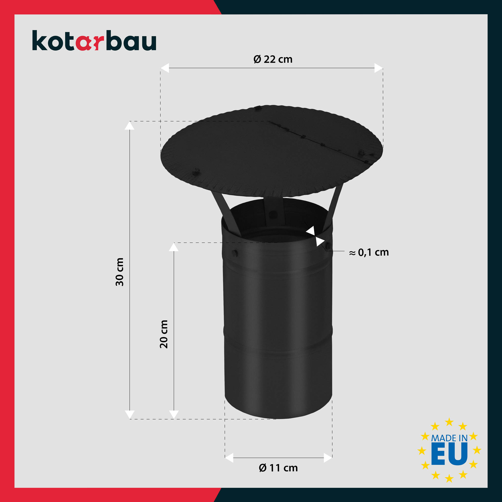 Stříška kouřová na komínové potrubí pozinkovaná černá 110 mm
