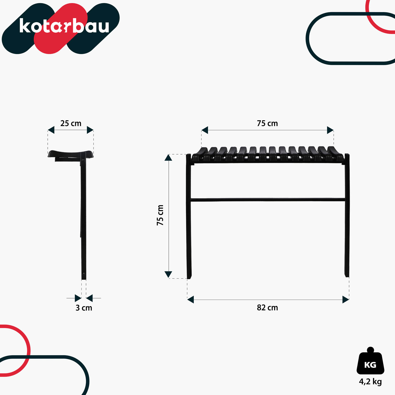 - Kovová konstrukce lavice s práškovým nástřikem zajišťuje nejen stabilitu, ale i odolnost proti korozi a mechanickému poškození.